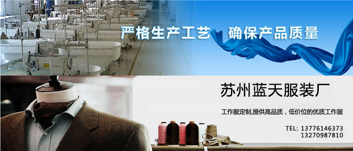 嘉兴蓝天服装厂拥有国内外先进的缝制设备及各类辅助设备; 工作服定制 高品质,低价位的优质工作服、嘉兴工作服,T恤衫定制!